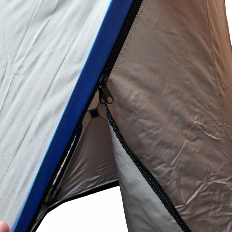 Тент палатки изготовлен из водонепроницаемой, влагостойкой, ветрозащитной и теплосберегающей ткани-полиэстер Oxford плотностью 300D